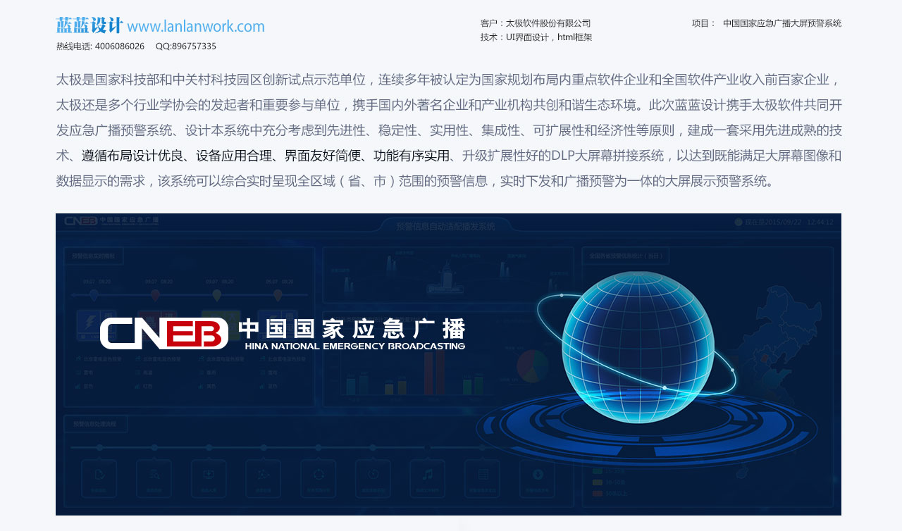 大屏UI設計系列之一:與太極合作,設計中國國家應急廣播大屏預警系統 界面設計