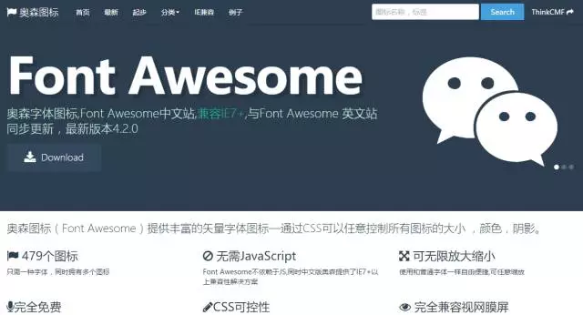 奧森圖標(Font Awesome),提供豐富的矢量字體圖標—通過CSS可以任意控制所有圖標的大小 ,顏色,陰影:http://www.thinkcmf.com/font/search.html