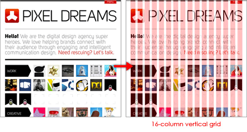 花時間觀察一些簡潔風格的網站 ,你會發現它們當中的絕大多數都有用到經過良好規劃的網格布局系統。如果哪位朋友對網格布局還不大了解的話,可以設想一下,在著手進行實際的視覺設計工作之前,使用輔助線將頁面劃分為若干等寬的列,通過這種方式對頁面結構及元素的布局進行更精準的規劃。網格布局可以使設計方案當中的信息結構更加清晰,在視覺上具有強烈的節奏感與一致性。