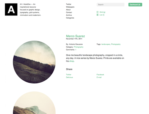 而Web設計領域當中卻不存在這類問題,如今,多數顯示設備所支持的顏色數量都龐大的不亦樂乎。從技術上講,我們可以隨心所欲地打造各種花里胡哨五彩繽紛的設計方案,然而這樣的實踐方式顯然會與簡潔至上的設計目標背道而馳。很多經典的案例當中只會用到兩種顏色, 即某個明度的灰色外加一種有彩色。其中的有彩色會用在最為關鍵的頁面元素上,例如重要的鏈接或頁頭當中的交互對象。從某種角度來說這種極簡的配色方案具有一石二鳥的作用,一方面,它無疑會對簡潔視覺風格的構建起到至關重要的作用,同時,這類方案還能有效的提高頁面元素之間的對比度,使那些重要元素得到的突出。
