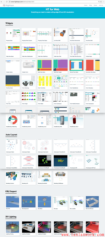 很明顯 http://www.hightopo.com/demos... 相比 http://www.hightopo.com/guide... 頁面,對于 HT 老用戶包括我們自己做技術支持,都感覺查找例子更直觀方便,但對于 HT 初學者,面對這一堆數百個涵括通用組件、網絡拓撲圖組件、3D 組件、矢量圖形、各種編輯器等等五法八門的 HTML5 例子盛宴,往往無從下手,為此我打算寫個《數百個HTML5例子學習HT圖形組件》的系列文章,引導各種電力、電信、工控 SCADA 等不同行業領域用戶,學習使用 HT 這全套一站式 HTML5 圖形組件。