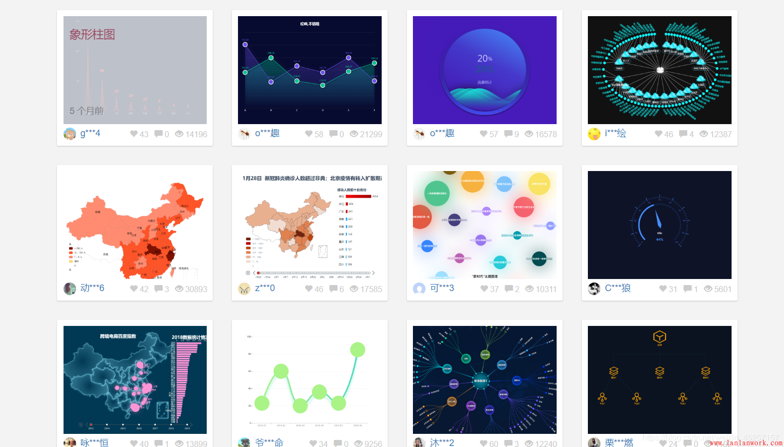 官方自帶的圖例,可能在很多時(shí)候并不能滿足我們的需要,在社區(qū)這里可以找到一些基于echart的高度定制好的圖表,相當(dāng)于基于jquery開發(fā)的插件,這里是基于echarts開發(fā)的第三方的圖表。