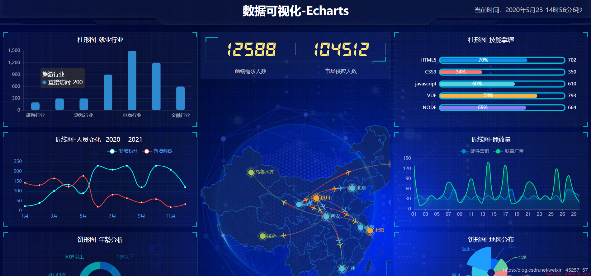 ECharts,一個(gè)使用 JavaScript 實(shí)現(xiàn)的開源可視化庫,可以流暢的運(yùn)行在 PC 和移動(dòng)設(shè)備上,兼容當(dāng)前絕大部分瀏覽器(IE8/9/10/11,Chrome,F(xiàn)irefox,Safari等),底層依賴矢量圖形庫 ZRender,提供直觀,交互豐富,可高度個(gè)性化定制的數(shù)據(jù)可視化圖表。