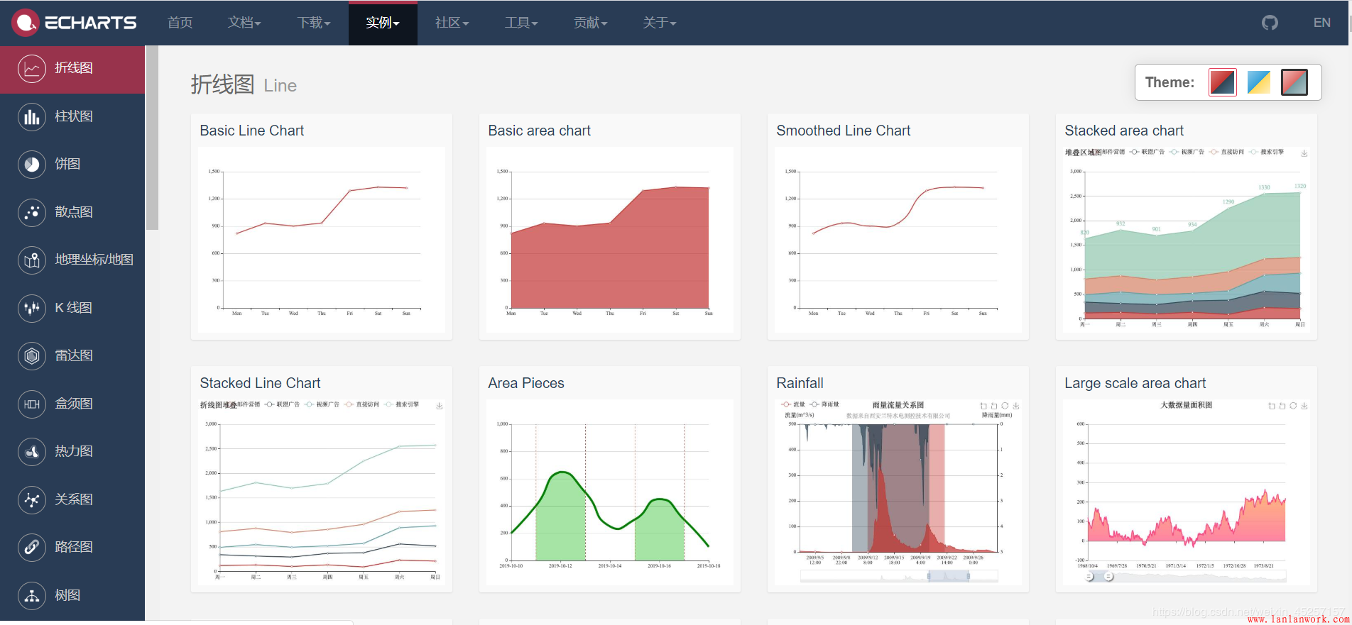 官網(wǎng)默認(rèn)為我們提供了大量的案例,我們需要使用那一種只需要直接點(diǎn)擊打開后復(fù)制他們的相關(guān)配置,然后按照我上面說的5大步驟進(jìn)行使用即可。