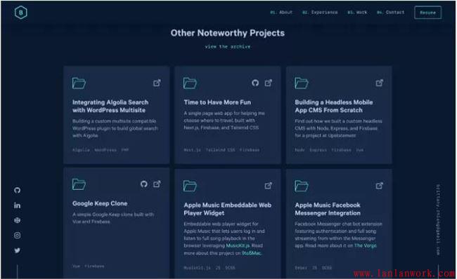 這兩個極簡主義的暗黑主題網站都使用了粗體字體。小心地使用單一強調色的陰影,以符合暗黑模式UI設計原則。