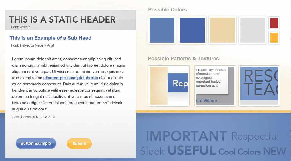 介紹網站所使用的文字排印方案,包括字體風格、選取這些字體的理由等。這里還要通過一些具有代表性的具體圖示來介紹字體風格與頁面上下文環境之間的關系。