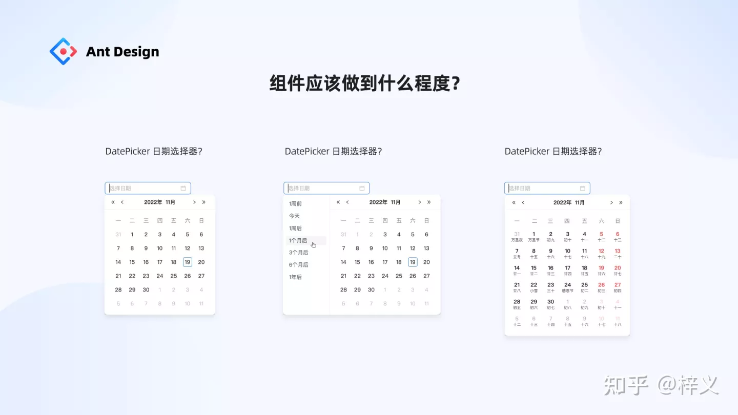 時間原因,就不再講解更多案例。這邊給大家預留一個小作業,我們在 4.0 的時候升級了 3.0 日期選擇器的交互,請大家用元規范評估模型評估一下哪個方案更好?