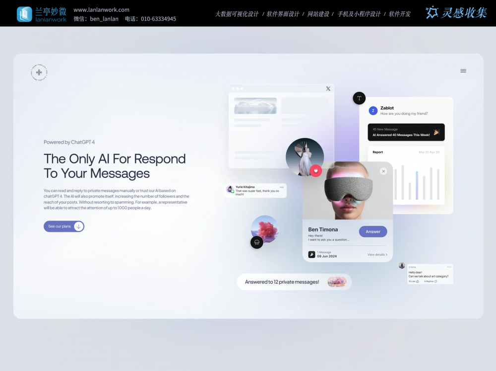 我們建立了一個微信群,每天分享國內外優秀的設計,有興趣請加入一起學習成長,咨詢及進群請加藍小助微信ben_lanlan。