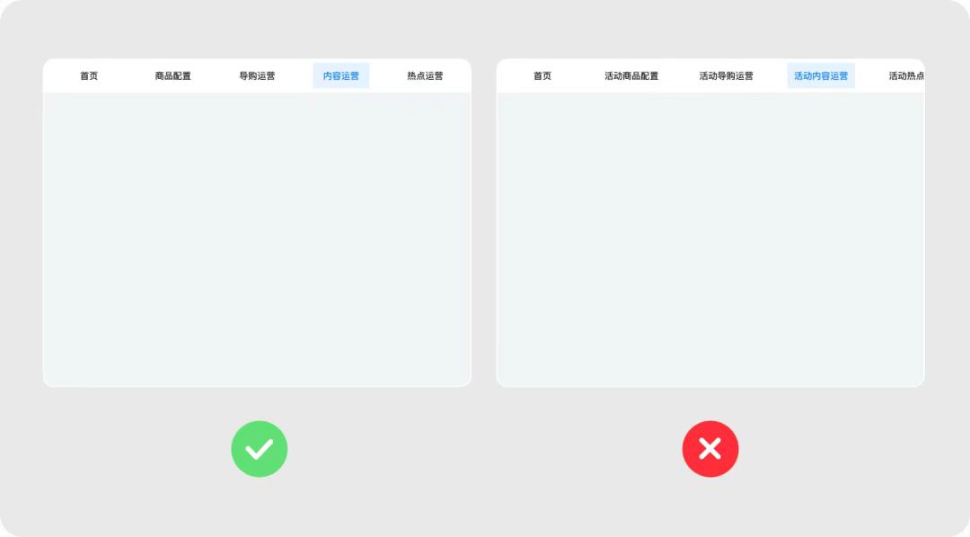 3、控制一級(jí)導(dǎo)航菜單數(shù)量,以免視覺溢出過多。保證文本易于辨識(shí),使用已于理解的圖標(biāo),減少重復(fù)文字,精簡(jiǎn)菜單名稱。