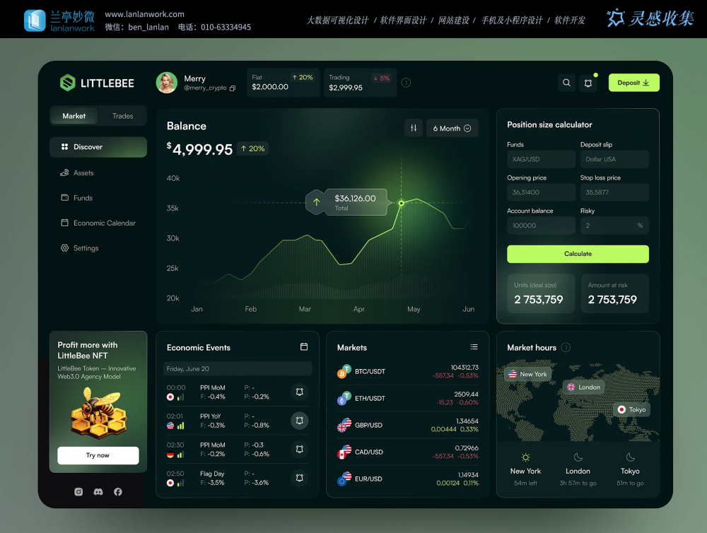 • 視覺風(fēng)格:暗黑底色搭配深綠線條,突出數(shù)據(jù)可讀性,圖表采用簡(jiǎn)潔線條設(shè)計(jì),無過度動(dòng)效,契合金融產(chǎn)品的專業(yè)屬性;