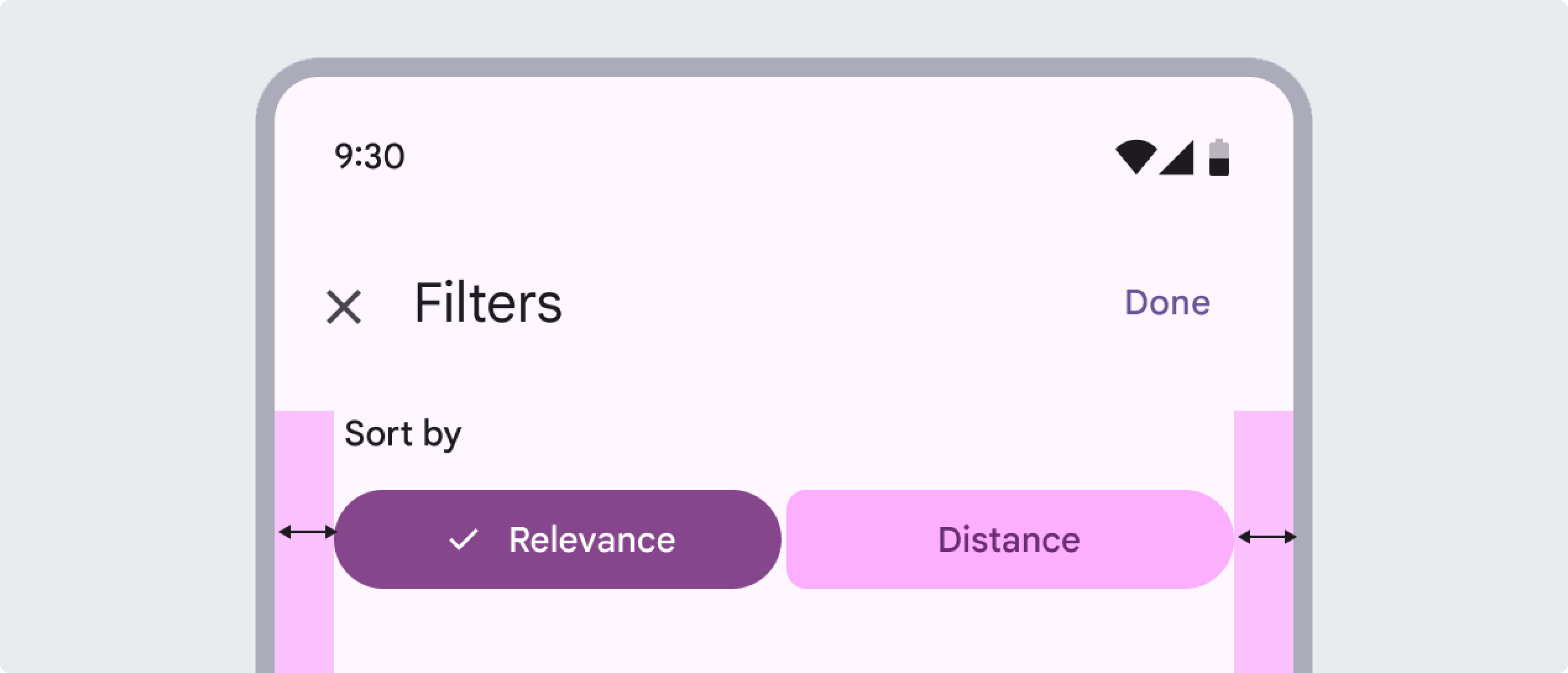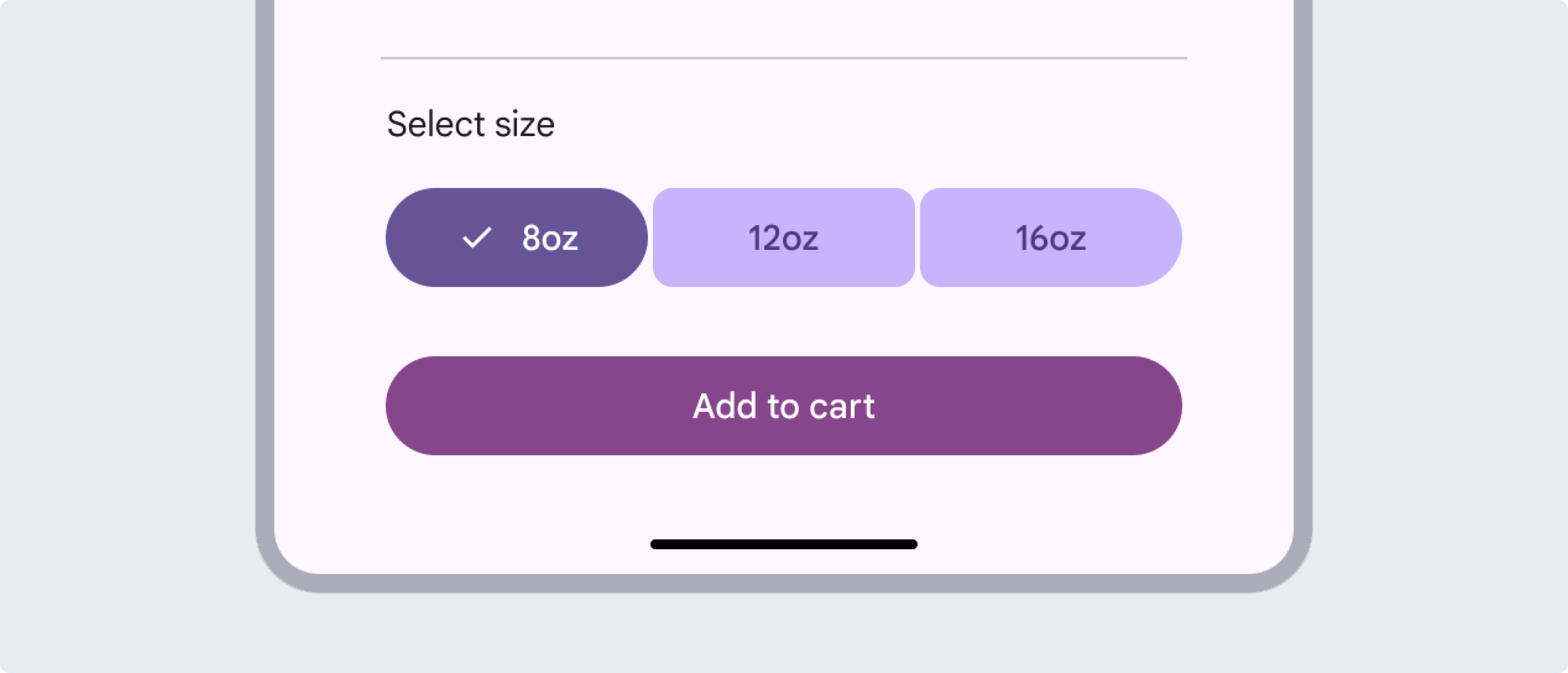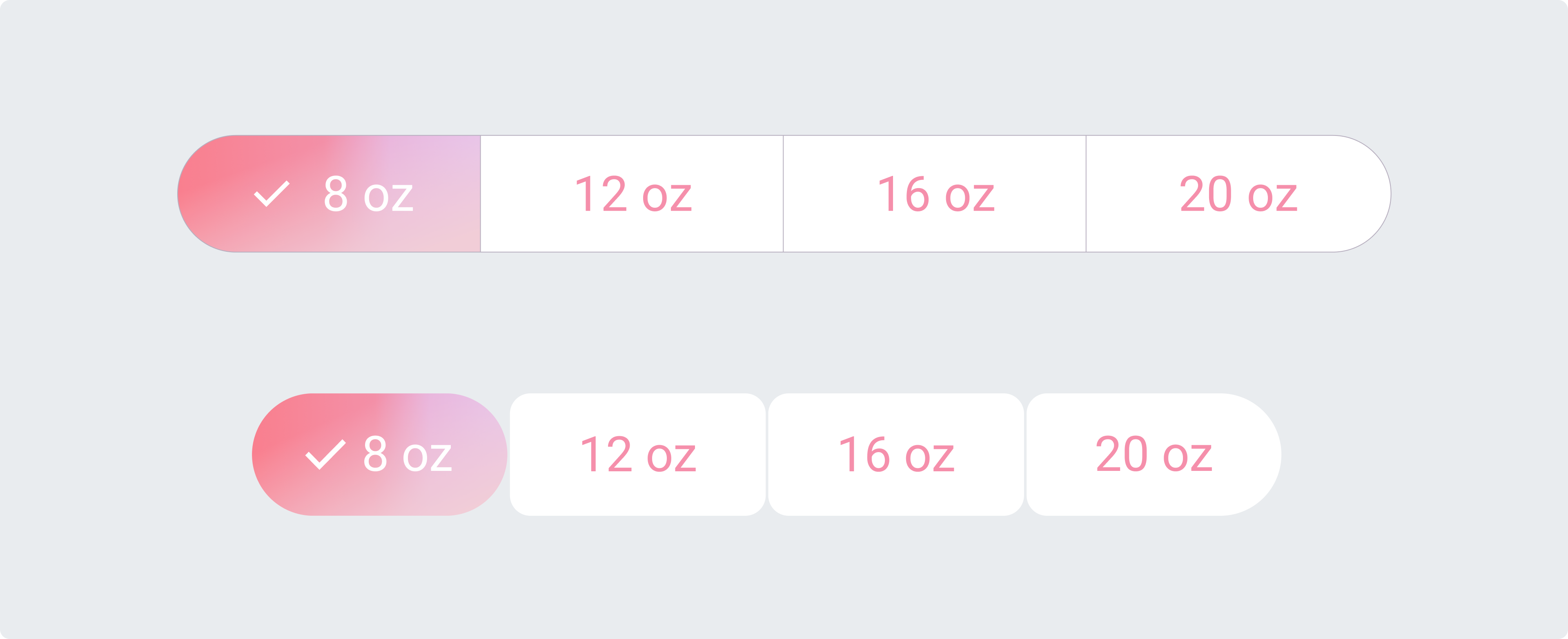 如果按鈕內容彼此關聯且可選,請使用鏈接按鈕組。在購物應用中,鏈接按鈕組用于選擇商品的容量,