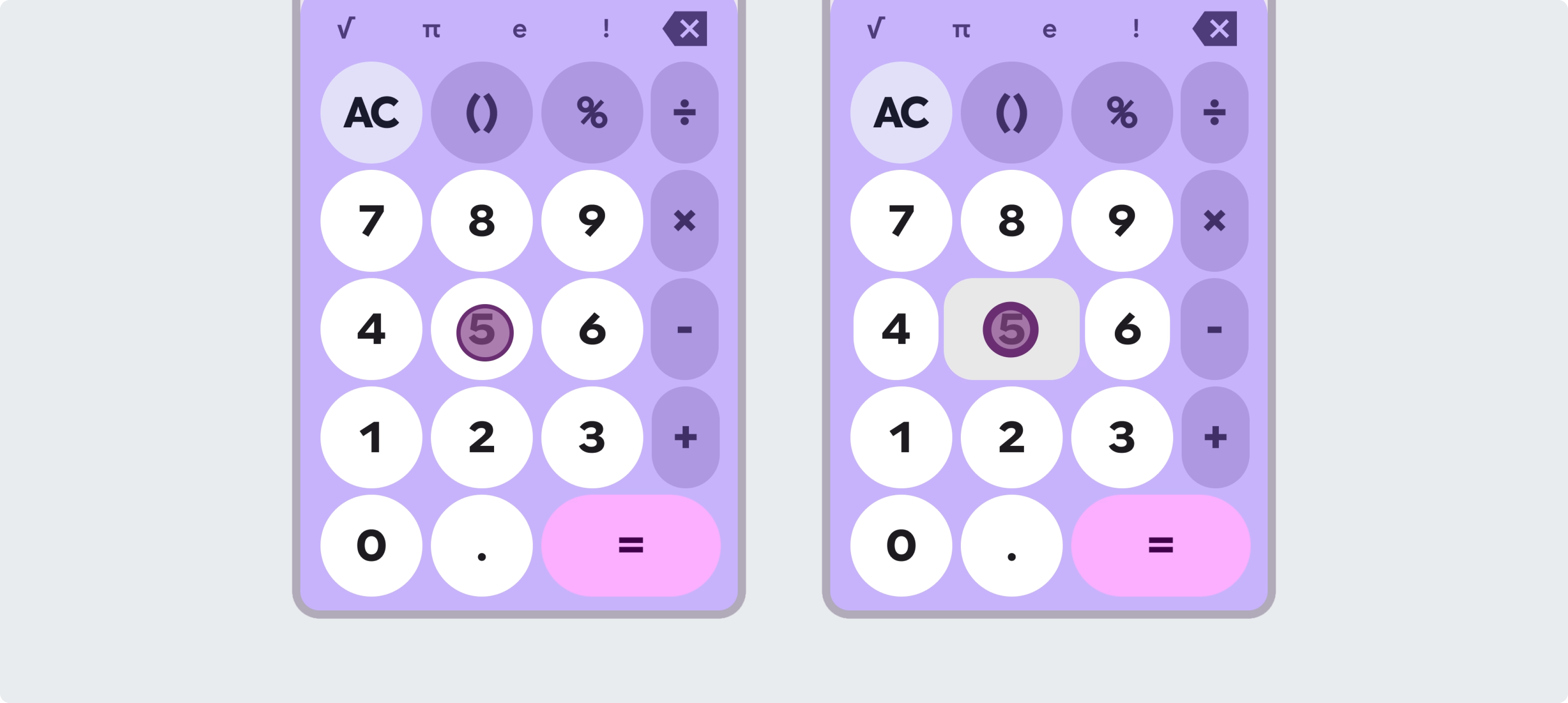 按下按鈕時,其寬度和形狀會發生變化。在標準按鈕組中,按皮下按鈕也會影響相鄰按鈕的寬度。相比之