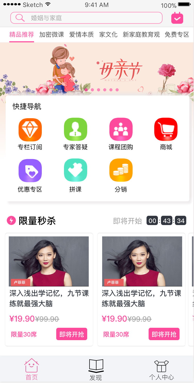 1.首頁(yè)根據(jù)產(chǎn)品的不同特色,設(shè)置了二級(jí)導(dǎo)航,將、婚姻、家庭關(guān)系、戀愛(ài)、 母嬰、育兒等分類(lèi)作為二級(jí)導(dǎo)航標(biāo)題,既能用來(lái)統(tǒng)一呈現(xiàn)特色內(nèi)容,又能保證頁(yè)面 信息的層級(jí)關(guān)系清晰明了;