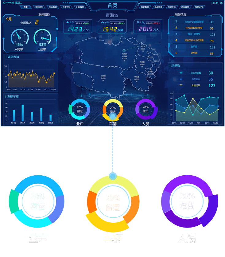 行業(yè)態(tài)勢展示了道路交通運(yùn)輸行業(yè)的基礎(chǔ)數(shù)據(jù)和走勢,實(shí)時(shí)反映行業(yè)的運(yùn)行狀態(tài),將采集的數(shù)據(jù)形象化、直觀化、具體化。為了加強(qiáng)某些重點(diǎn)工作,我們還需加入“聯(lián)網(wǎng)聯(lián)控”、“互聯(lián)互通”等相關(guān)專題。系統(tǒng)所具備的數(shù)據(jù)管理能力可將現(xiàn)有的數(shù)據(jù)進(jìn)行有效的整合,快速準(zhǔn)確地提供報(bào)表并提出決策依據(jù)。